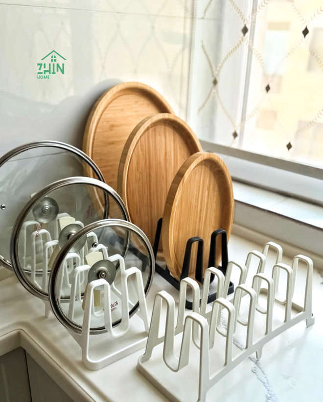 به کمک این وسیله میتونید درب های قابلمه یا سینی و.. راحت چیدمان کنید و کابینتتون هم همیشه مرتب باشه☺️🌟